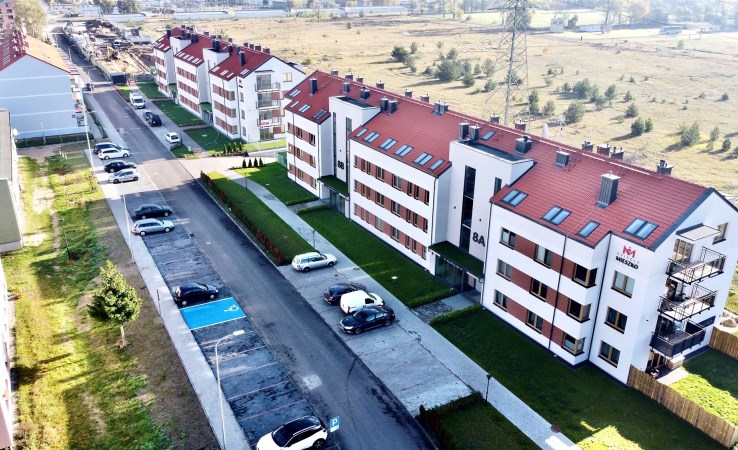 Nowoczesne budynki z halami garażowymi, windami, dużymi balkonami i przemyślanymi układami wnętrz tworzą spójną, estetyczną przestrzeń mieszkalną.