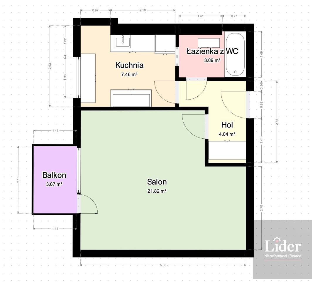 Powierzchnia pokoi 21,82 m2