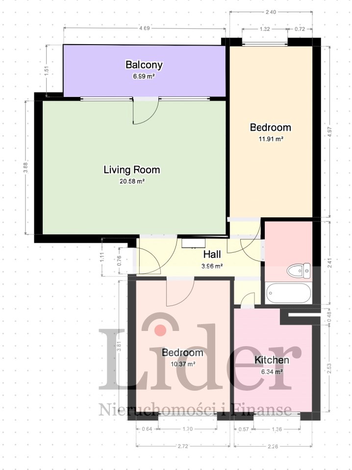 | Powierzchnia pokoi | 20,58 ; 10,37 ; 11.91 m2 |