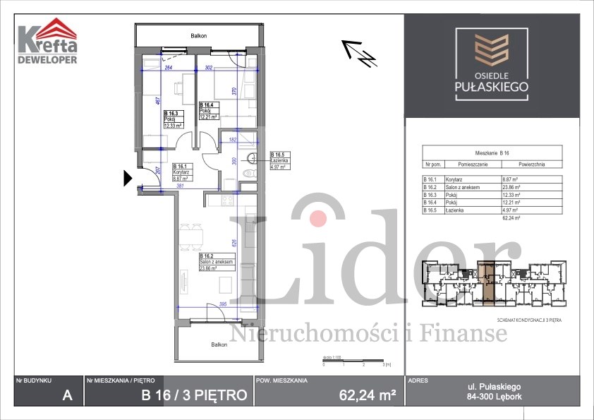 | Powierzchnia użytkowa [m2] | 62,24 m² |