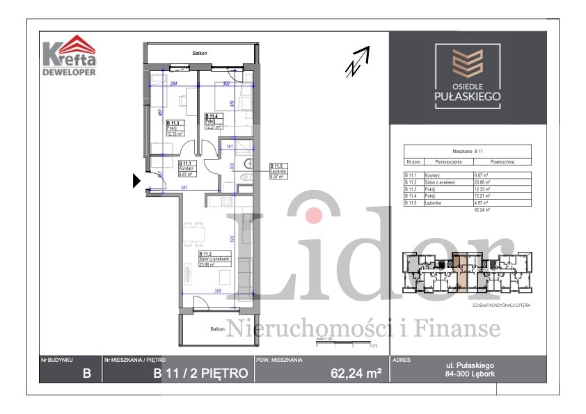 | Powierzchnia użytkowa [m2] | 62,24 m² |