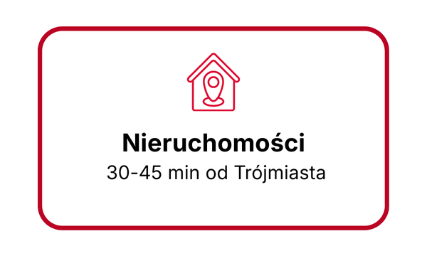 - nieruchomości 30–45 minut od Trójmiasta